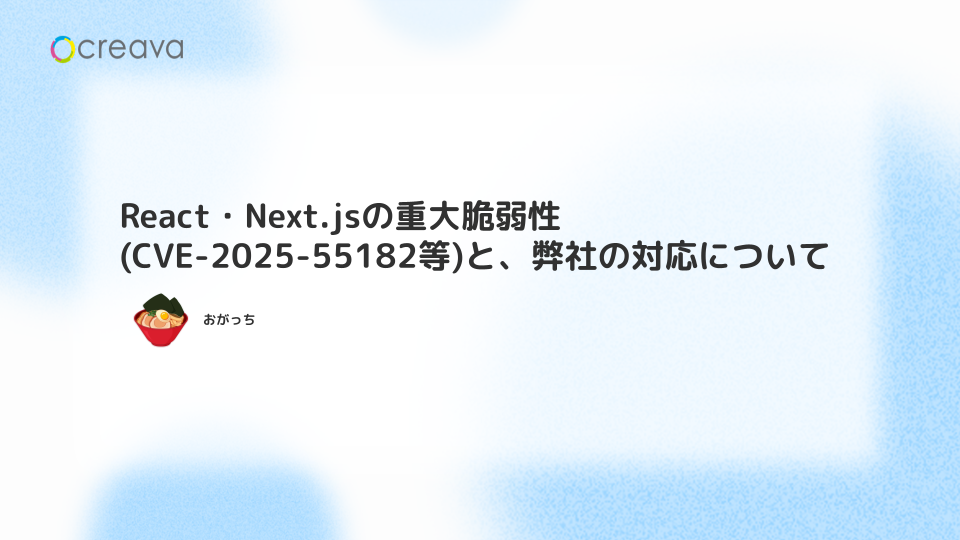 先日、Webフロントエンド開発の事実上の標準である「React」および「Next.js」において、極めて深刻な脆弱性が発表されました。 本記事では、この脆弱性の概要と、弊社クリーヴァにおける対応、そして日頃からのセキュリティ対策の重要性についてお話しします。